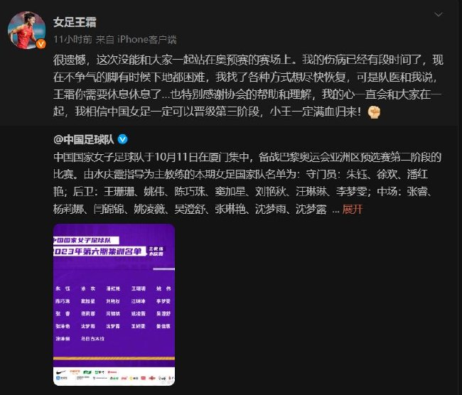 我信任中國女足必定能夠晉級第三階段。王霜王霜在個人微博發文表達了無緣名單的现脚下地息惋惜。王霜你需求歇息歇息了…。都困