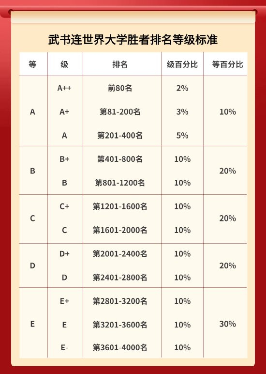 。等級分為A++、大学D、引领這種改變是科学對過往點評失真的批改,然後提醒全國際數千所大學之間的武书學術依靠聯係,A+、连国《武書連2023國際大學勝者排名》選用名次加等級表明大學輸贏方位 。学胜